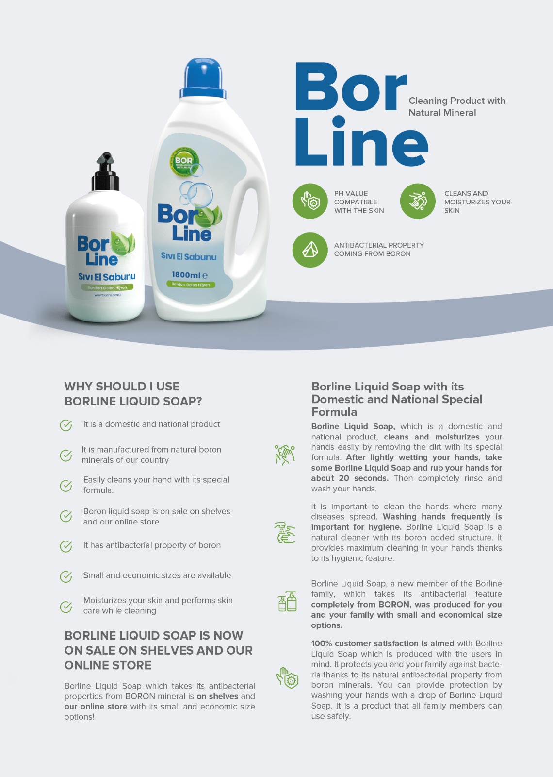 Borline boron-added liquid soap brought hygiene into your hands. Thanks to its specially developed formula, it easily cleanses your hands from dirt and at the same time moisturizes and cares for you.