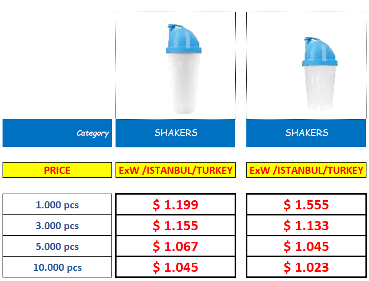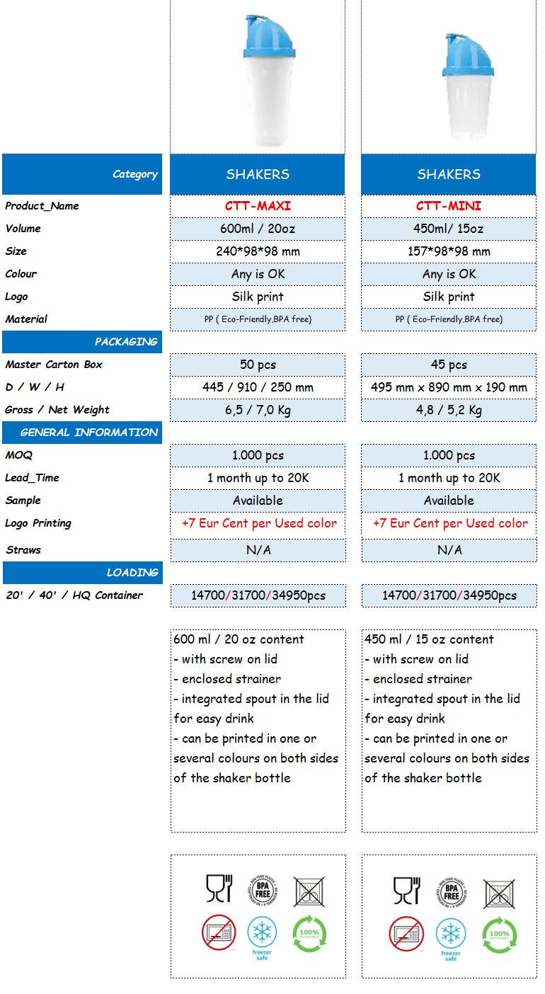 - can be printed in one or several colours on both sides of the shaker bottle